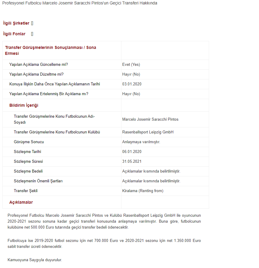 Galatasaray, Saracchi transferini resmen tamamladı. Sarı-kırmızılılar, Uruguaylı sol beki 1.5 yıllığına kiraladı. Galatasaray, bu transfer için Leipzig'e 500 bin Euro, oyuncuya yarım sezon için 700 bin Euro, gelecek yıl için ise 1 milyon 350 bin Euro ödeyecek.