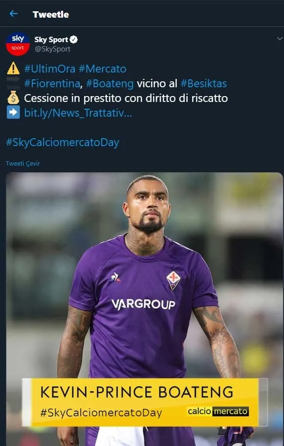 İtalya'dan Di Marzio'nun haberine göre Beşiktaş gözünü dünya yıldızı isme çevirdi. Fiorentina forması giyen Boateng'i kiralamak için girişimlere başladı. Boateng daha önce Milan ve Barcelona formaları da giymişti.
