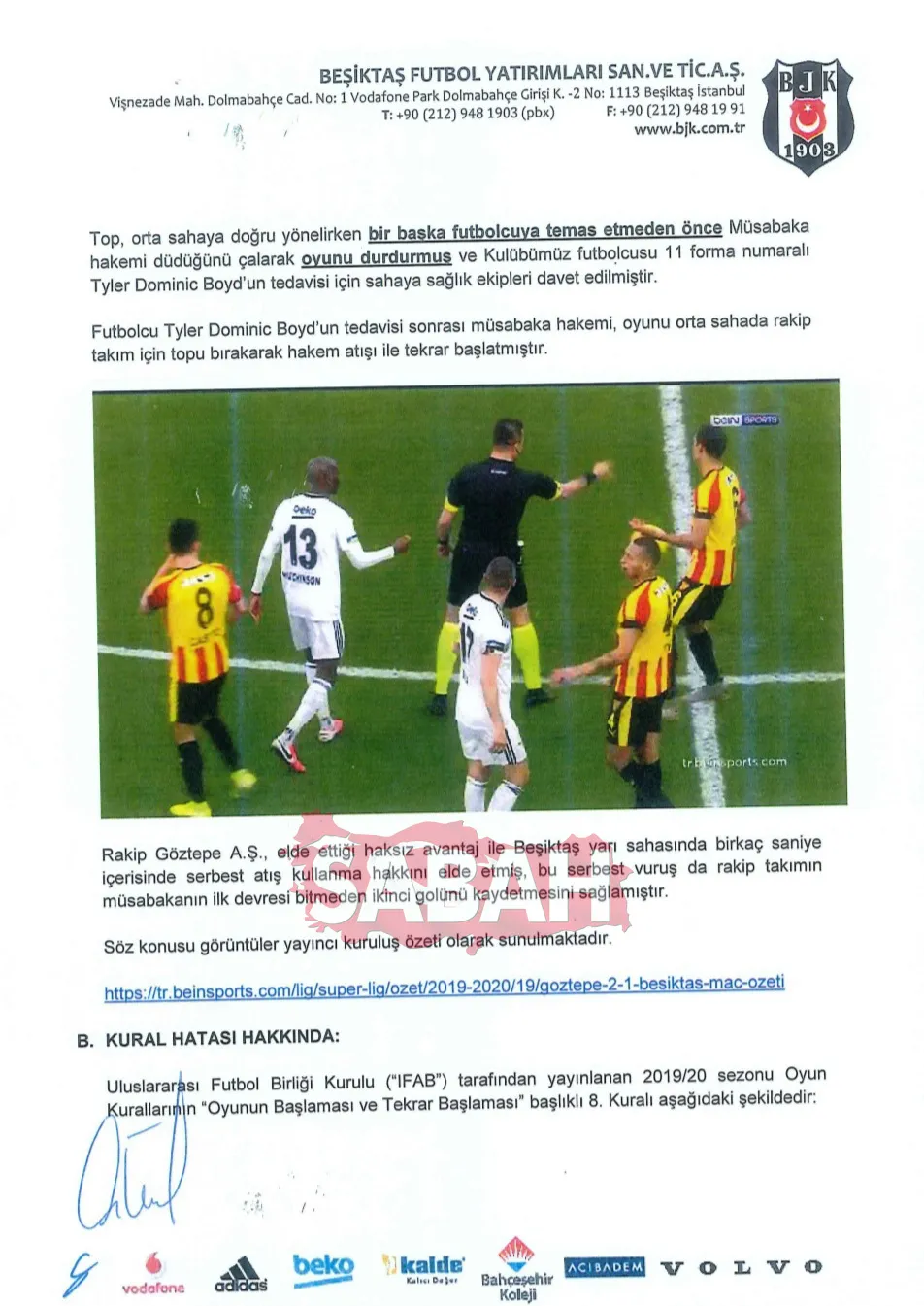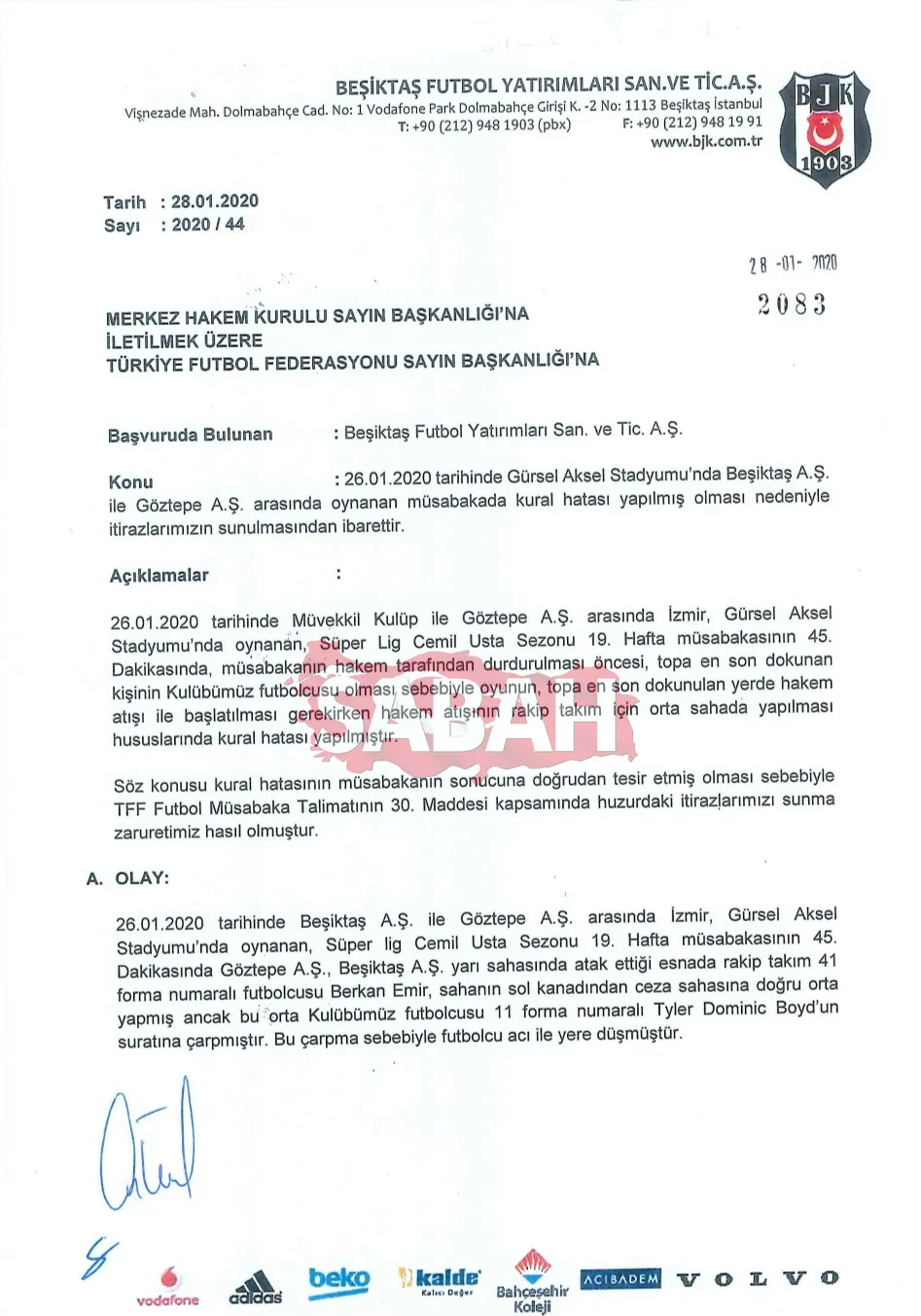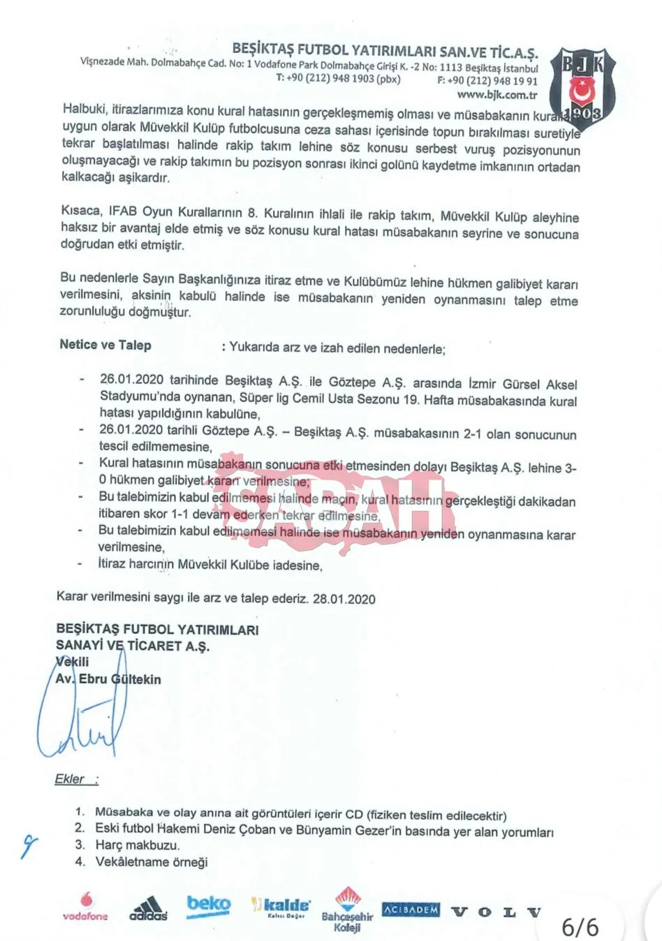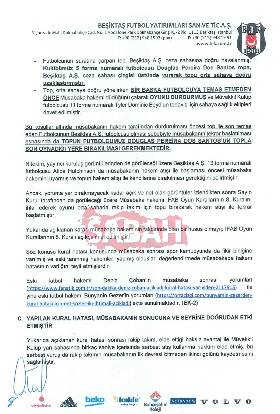 İŞTE BEŞİKTAŞ'IN İTİRAZ BELGELERİ