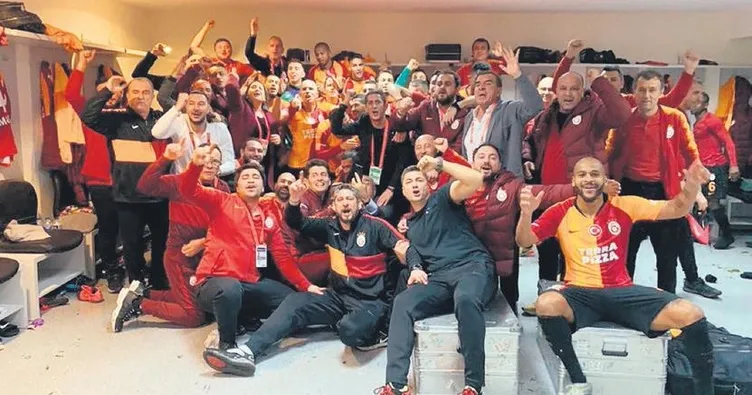 Kadıköy'deki 20 yıllık galibiyet hasretine 3-1'lik skorla son veren Galatasaray'da büyük sevinç vardı. Sahadaki coşku, soyunma odasına da taşındı. Futbolcular ve teknik heyet tarihi galibiyeti marşlarla kutlarken hep birlikte objektiflere poz verdi. Soyunma odasına görüntülü bağlanan Melo da Galatasaray'ın sevincine ortak oldu.