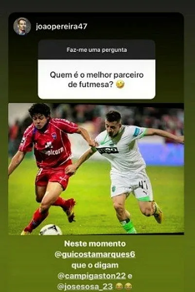 Başaralı sağ kanat oyuncusu Pereira, devre arasında Yeni Malatyaspor'dan Trabzonspor'a transfer olan Brezilyalı oyuncu Guılherme ile Portekiz'de bir birlerine rakip oldukları maçın fotoğrafını paylaştı. Söz konusu dönemde Pereira, Sporting Lizbon forması giyerken, Guılherme ise Gil Vicente forması giyiyordu. İki oyuncu 8 yıl sonra bordo-mavili takımda buluştu. Portekizli oyucu 'en iyi ortak kim' sorusuna Guılherme ile birlikte olan fotoğrafını paylaşırken, takım kaptanı Sosa ise Campi ile ayak tenisi oynadıkları anın fotoğrafını paylaşarak Pereira'ya yanıt verdi.