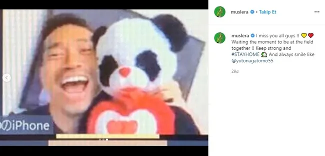 Sarı kırmızılıların Uruguaylı file bekçisi Fernando Muslera görüşmeye ait 3 fotoğrafa yer verdiği paylaşımının son görselinde yer alan Japon sol beke Nagatomo'ya atıfta bulundu ve " Herkesi çok özledim. Birlikte sahada olacağımız anı bekliyorum. Güçlü ol, evde kal ve her zaman Nagatomo gibi gülümse" dedi.