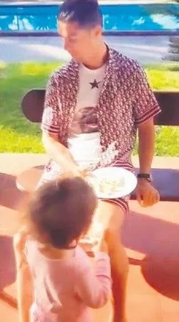 Ronaldo, corona virüsü nedeniyle evde ailesiyle birlikte vakit geçiriyor. Sporunu yaparken gündelik yaşantısını da sosyal medyadan paylaşıyor. Yıldız oyuncunun çocuğuna yemek yedirirken üzerinde görünen pijaması olay oldu.