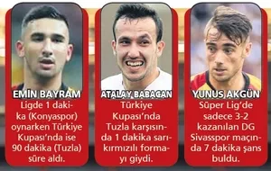 Selçuk İnan'ın veliahtı olarak görülen Atalay Babacan ise bu sezon Galatasaray'da sadece 1 dakika sahada kalabildi. 4. stoper olarak A takım'a çıkartılan 17 yaşındaki Emin Bayram ise Tuzlaspor'a 2-0 kaybedilen Türkiye Kupası maçında görev yaptı.