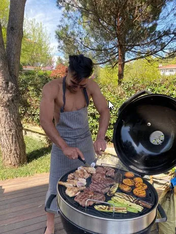Karantina süresi boyunca eşi Lorelei Taron'a yardım eden yıldız oyuncu, bu kez mutfak önlüğünü giyerek barbekünün başına geçti.