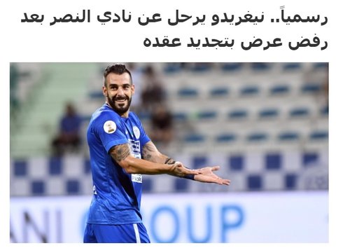 Al-Nasr futbol kulübü, İspanyol forvet Alvaro Negredo'nun sözleşmesinin yenilenmeyeceğini ve bu sezon kulüpten ayrılacağını doğruladı.