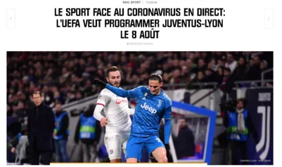 RMC Sport'ta yer alan habere göre, Şampiyonlar Ligi'nde 2019-20 sezonunu tamamlamak isteyen UEFA'nın ağustos ayını gözüne kestirdiği ve Juventus ile Lyon arasındaki son 16 turu rövanş maçının 8 Ağustos'ta oynatmayı planladığı belirtildi.