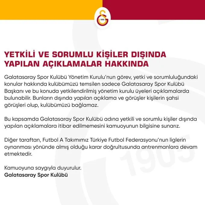 Galatasaray'dan yapılan açıklama şu şekilde;