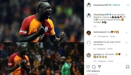 Sosyal medya hesabından paylaşımda bulunan Diagne, Galatasaray formalı fotoğrafının altına ''Bekleyemiyorum, geliyorum inşallah'' notunu düştü. Diagne'nin paylaşımının altına Galatasaraylı taraftarlarca, kısa sürede yüzlerce yorum yapıldı.
