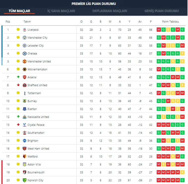 Bu sonuçla, Chelsea puanını 57 yaparak tekrar dördüncü sıraya yükseldi. Watford ise 28 puanla 17. sırada kaldı.