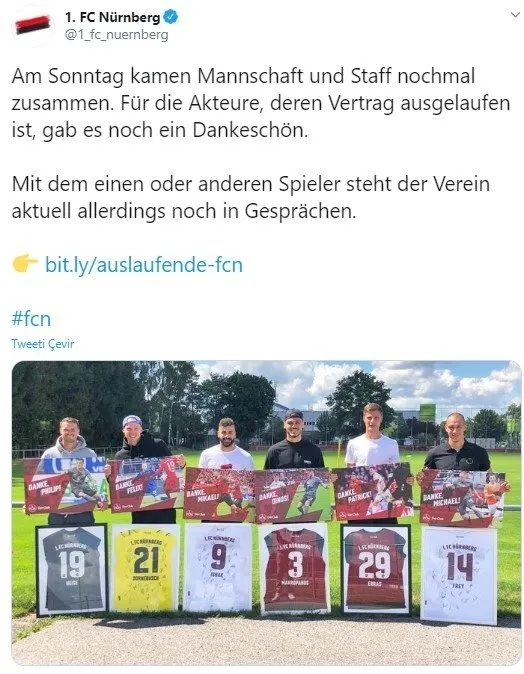 Nürnberg'in resmi internet sitesinden yapılan açıklamada oyuncuya teşekkür edilirken, kariyerinde başarılar dilendi.