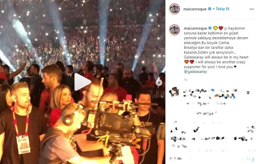 "Galatasaray'ı hayatımın sonuna kadar kalbimin en güzel yerinde saklayıp, desteklemeye devam edeceğim. Bu büyük camia Brezilya'dan bir taraftar daha kazandı, sizleri çok seviyorum..."