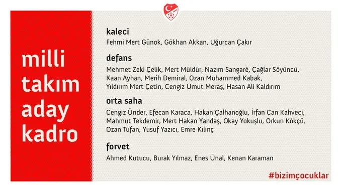 MERT GÜNOK, MERT MÜLDÜR, OZAN KABAK, MERİH DEMİRAL, UMUT MERAŞ, OKAY YOKUŞLU, İRFAN CAN KAHVECİ, MERT HAKAN YANDAŞ, CENGİZ ÜNDER, EMRE KILINÇ, ENES ÜNAL