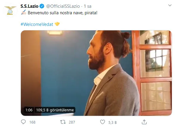 Transferin resmiyet kazanmasıyla Lazio, büyük uğraşlar sonucu kadrosuna kattığı Kosovalı isim için ardı ardına paylaşımlarda bulundu. İtalyan ekibinin golcü oyuncu için yaptığı 'Gemimize hoş geldin korsan!' başlıklı paylaşımda kısa sürede binlerce beğeni aldı.