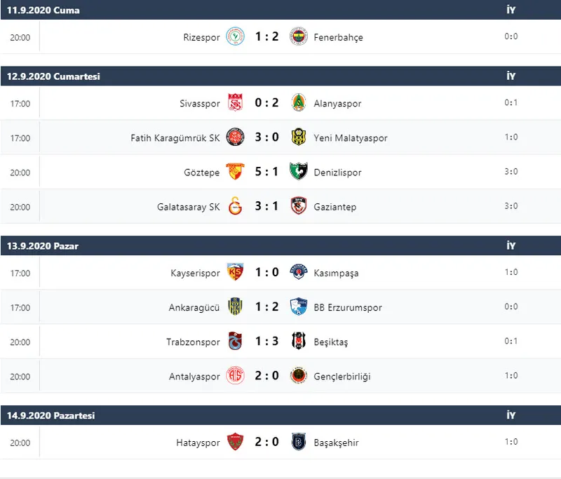 Süper Lig'de 2020-2021 sezonu, ilk hafta maçları ile başladı. Haftanın açılış maçında Fenerbahçe, Rize deplasmanından 2-1'lik galibiyetle döndü. Galatasaray ise sahasında Gaziantep FK'yı ağırladı ve rakibini 3-1'lik skorla devirdi. İlk haftanın en çok merak edilen mücadelesinde, Beşiktaş, zorlu Trabzonspor deplasmanından 3-1'lik galibiyetle döndü. Son şampiyon Medipol Başakşehir ise ligin yeni ekibi Hatayspor karşısında 2-0'lık bir yenilgi yaşadı.