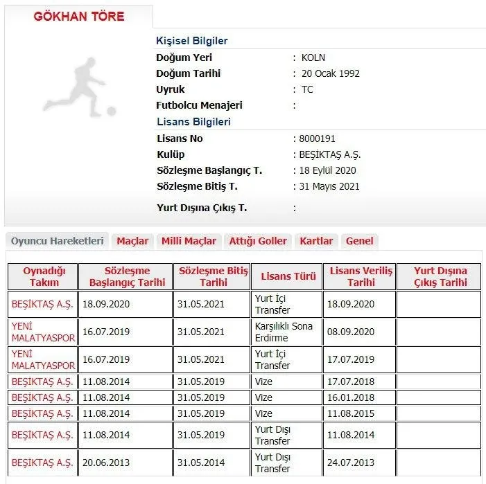 Geçtiğimiz günlerde Yeni Malatyaspor ile sözleşmesini fesheden Gökhan Töre, yeniden Beşiktaş'a döndü. Siyah-beyazlıların transferini TFF'ye bildirdiği ve lisansını çıkarttığı 28 yaşındaki kanat oyuncusu, görev verilmesi halinde Antalyaspor'a karşı forma giyebilecek.