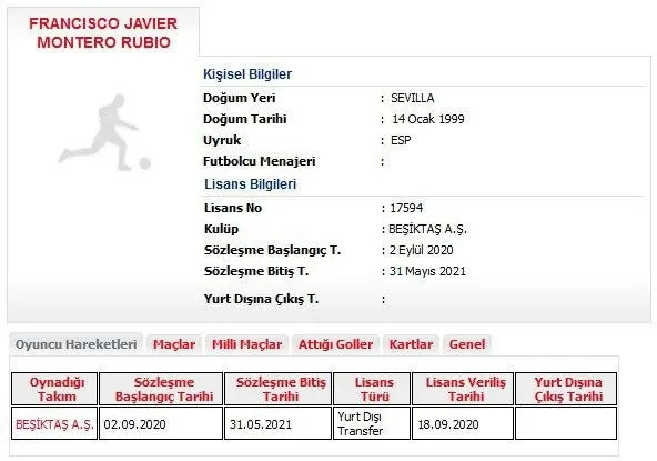 Süper Lig'de ilk hafta Trabzonspor deplasmanından galibiyetle dönen Beşiktaş'ta, Antalyaspor ile oynanacak maçın hazırlıkları devam ediyor. Siyah-beyazlılara bu karşılaşma öncesi Gökhan Töre'nin ardından bir müjde daha geldi. İlk hafta İspanya Futbol Federasyonu'ndan belgeleri gelmediği için lisansı çıkartılamayan Montero'nın ismi, TFF'ye bildirildi. İspanyol stoper görev verilmesi halinde Antalyaspor'a karşı forma giyebilecek.