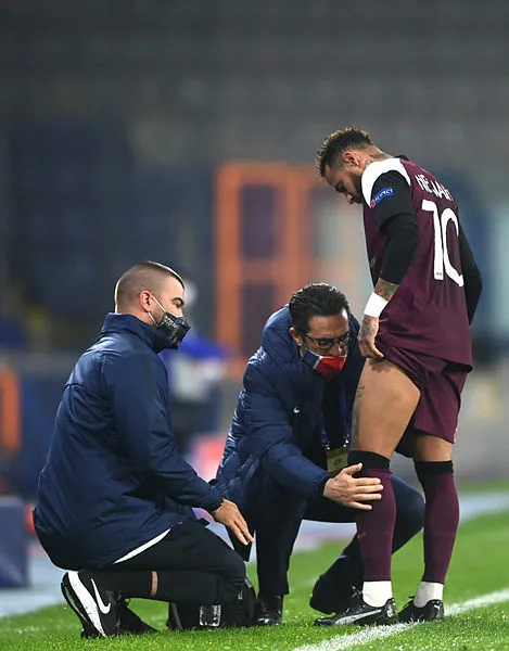 Brezilyalı yıldız yaşadığı sakatlığın ardından kenara, 'Beni değiştirin' şeklinde işaret yaptı. Alman teknik adam Tuchel, 26. dakikada Neymar'ı kenara alarak Pablo Sarabia oyuna sürdü.