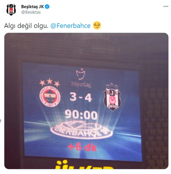 Siyah-beyazlılar skor tabelasının fotoğrafını paylaşarak, Fenerbahçe'yi etiketli ve, "Algı değil olgu" notunu düştü.