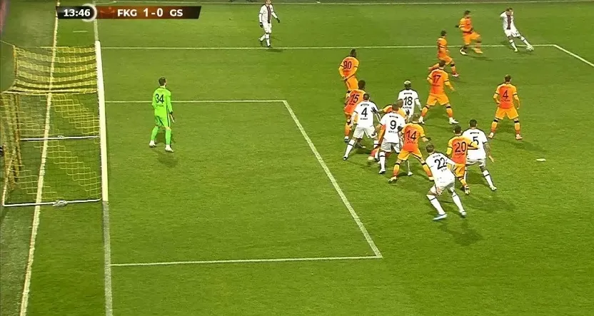 Hızlı başlayan karşılaşmanın henüz başında kullanılan köşe vuruşu sonrası Karagümrük'te Balkovec'in vuruşu sonrası sarı-kırmızılı oyunculara da çarpan top kale önünde bulunan Koray Altınay tarafından ağlara gönderildi. Karşılaşmanın hakemi Mustafa Öğretmenoğlu başta golü verirken VAR odasında bulunan hakem Zorbay Küçük ve Kerem Ersoy'un uyarısı sonrasında Koray'ın ofsayt pozisyonunda bulunduğu gerekçesiyle gol geçersiz sayıldı.