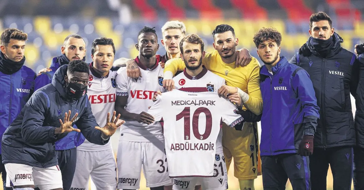 Trabzonsporlu oyuncular, dün Ankara'da aldıkları galibiyeti ayağı kırıldığı için sezonu kapatan takım arkadaşları Abdülkadir Ömür'e hediye etti. Bordo-mavililer, Djaniny'nin golünden sonra ve 90 dakikanın ardından Ömür'ün formasını açtı. Ekuban ise golü sonrası