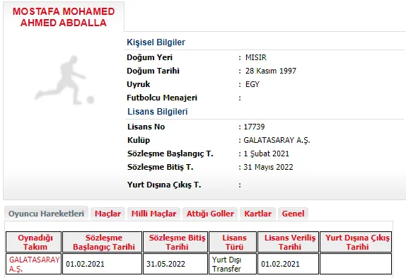 Galatasaray SK: "Mostafa Mohamed'e 2020-2021 sezonu için net 400.000 USD, 2021-2022 sezonu için ise net 725.000 USD sabit transfer ücreti ödenecektir.