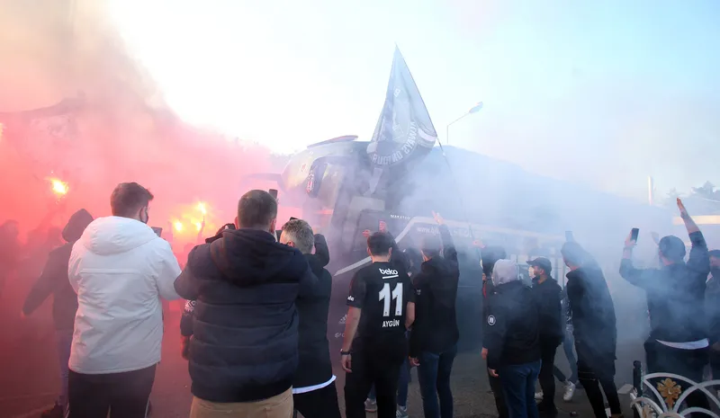 Beşiktaş taraftarları, maç öncesi Siyah-beyazlı takımı Nevzat Demir Tesisleri'nden coşkulu bir şekilde uğurladı