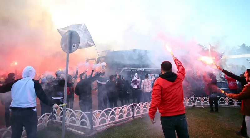 Siyah-beyazlı taraftarlar maç öncesi Vodafone Park Stadyumu'nda da takımı coşkulu bir şekilde karşıladı.