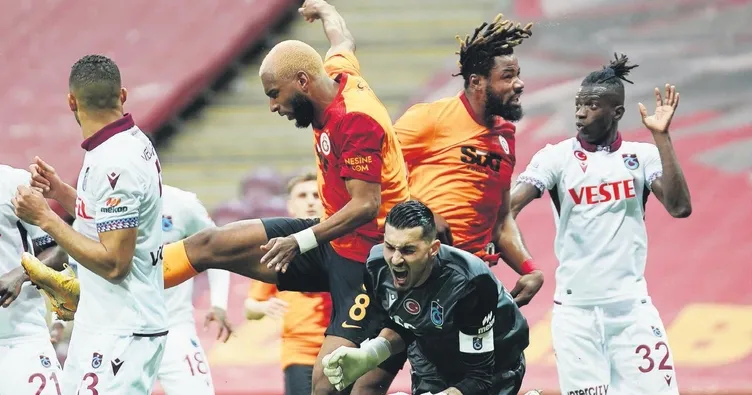 ASLAN YARIŞTA ÖNEMLI BIR AVANTAJIN KIYISINDAN DÖNDÜ Göztepe maçının aldatıcı olduğu dün ortaya çıktı. Trabzonspor'a yenilmekten sonra anda kurtulan Galatasaray, Fenerbahçe'nin bay geçtiği, Beşiktaş'ın iki puan kaybettiği haftada şampiyonluk havasına sokacak galibiyeti alamadı. Oyunda ilk yarınınhakimi olan Trabzonspor'da Bakasetas'ınköşeye giden şutunda iyiyer tutan Muslera gole izin vermezken,kornerde Nwakaeme'nin kafasıdirekten döndü. Trabzonspor'un zayıf karnı görülen Serkan Asan savunmada hatasızdı ve kilidi açamayan Aslan'da Kerem kanat değiştirmek zorunda kaldı. Feghouli kötü günündeydi ve Galatasaraybeklenen baskıyı kuramadı. İkinci yarıya Feghouli'siz başlayan Aslan, Emre Akbaba ve Halil'in girmesiyle hücumda çoğaldı ancak organize olamadı. Luyindama'nın ceza yayına sektirdiği topa gelişine 90'a vuran Edgar Ie, Trabzonspor'u 1-0 öne geçirdi. Uzatmadakifrikik organizasyonundanEmre Akbaba ile golü bulan Galatasarayberaberlikle yetindi.