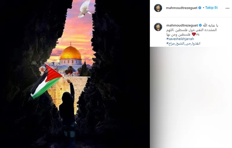 Aston Villa'da forma giyen Mısırlı futbolcu Mahmoud Trezeguet Instagram paylaşımında, "Allah'ım sen Filistin'i ve Filistinlileri koru" sözleriyle tepkisini dile getirdi.
