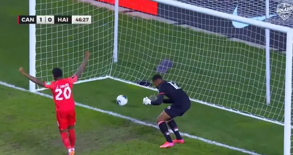 İlk yarısı 0-0 sona eren maçın 46. dakikasında Haiti kalecisi Josue Duverger, kendisine atılan geri pasta iki kez topu ıskaladı ve meşin yuvarlağın ağlara gitmesine engel olamadı.