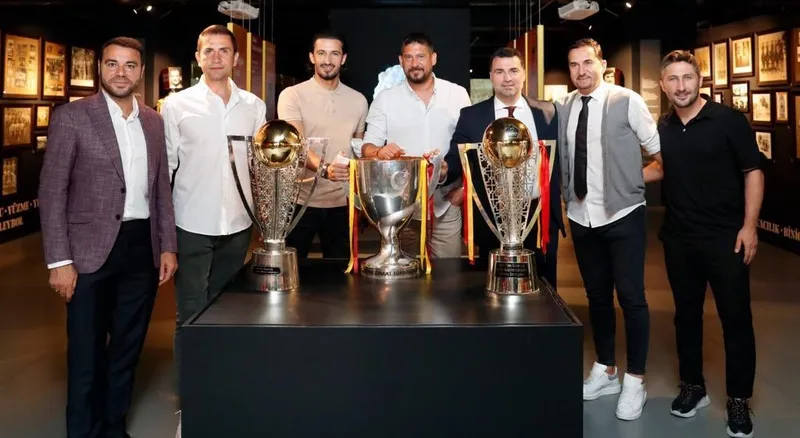 Burak Elmas'ın hatıra fotoğrafı çektirdiği eski futbolcular, Galatasaray Stadyum Müzesi'ni de gezdi.
