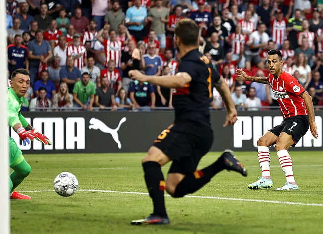 Deneyimli golcü Eran Zahavi maçın 2. dakikasında Muslera'nın hatasını affetmedi ve takımını 1-0 öne geçirdi. Bu dakikadan sonra Muslera'ya her top geldiğinde PSV taraftarları uğultu çıkartarak Uruguaylı eldiveni baskı altına almaya çalıştı.
