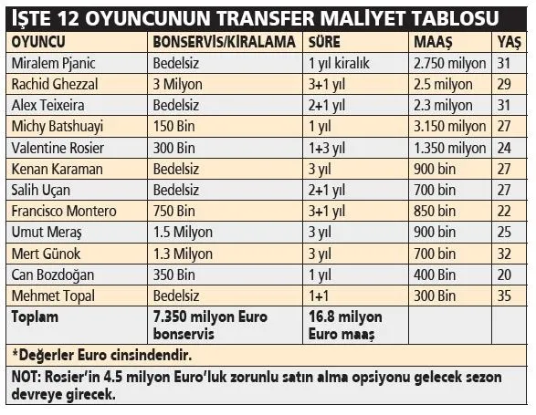 Pjanic, Teixeira ve Batshuayi gibi yıldızları da oldukça düşük maliyetle takıma kazandırıp herkesin hayranlığını kazandı. Yönetim geçen sezon performansları ile takımı zafere götüren Rachid Ghezzal ile Valentin Rosier için ilk hamlelerini yaparak iki oyuncuyu da başta G.Saray olmak üzere kimseye bırakmadı.