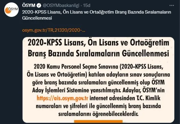 KPSS BRANŞ SIRALAMASI BELLİ OLDU MU?