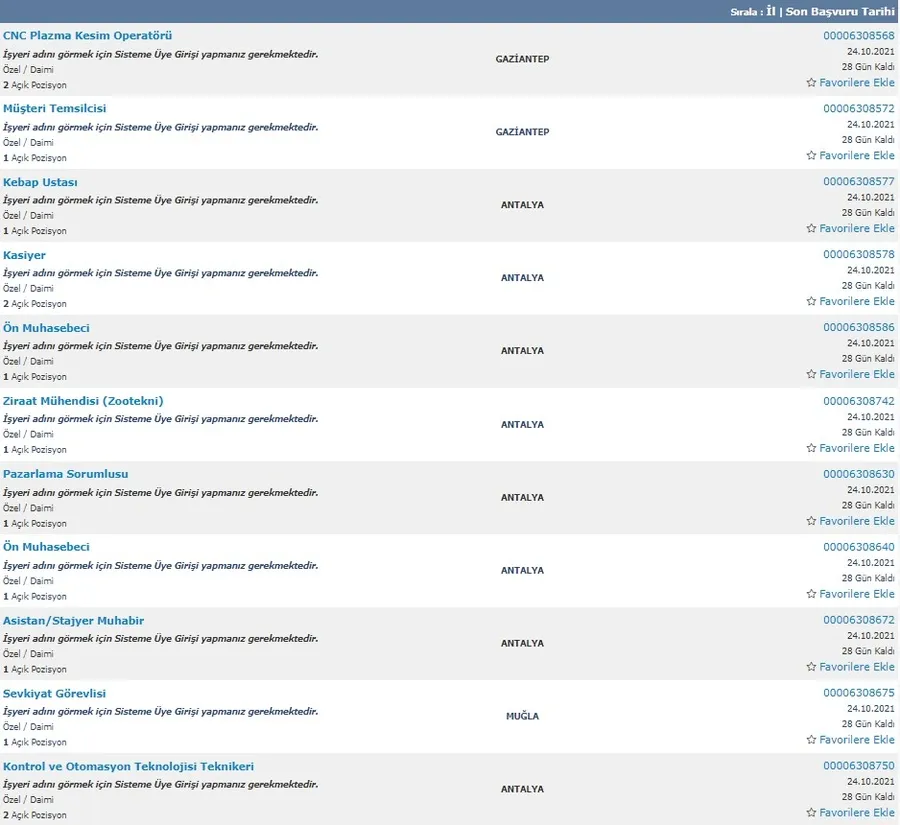 2021 GÜNCEL İŞKUR İŞ İLANLARI