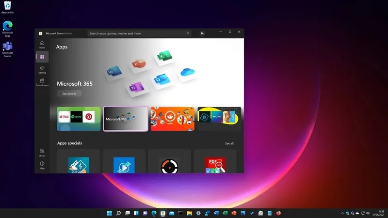 Uygulamalar ve diğer içerikler için birleşik bir vitrin görevi gören Microsoft Store da Windows 11'de yeniden tasarlanmış halde yer almakta. Microsoft artık geliştiricilerin standart Evrensel Windows Platformu uygulamalarının yanı sıra Microsoft Store'da Win32, Progressive web uygulamaları ve diğer paketleme teknolojilerinin dağıtılmasına izin vermekte. Windows 11, kullanıcıların cihazlarına belirli Android uygulamalarını Amazon Appstore aracılığıyla Microsoft Store içinde yüklemelerine izin verecek. Bu özellik için bir Microsoft hesabı, bir Amazon hesabı ve Windows Amazon Appstore istemcisi için tek seferlik bir yükleme gerekir.