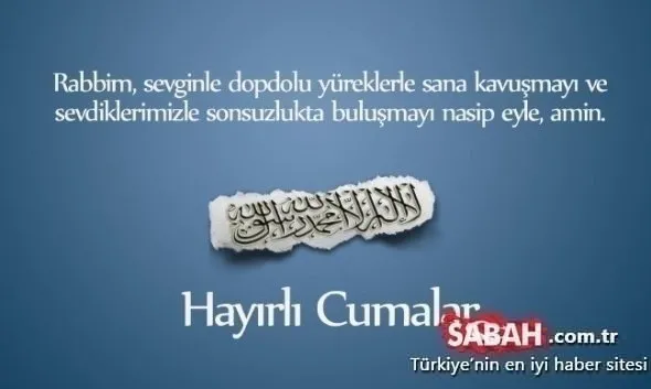Ya Rabbim; bu mübarek cuma günün yüzü suyu hürmetine biz aciz kulların ne derdi varsa, ne sıkıntısı varsa; dertlilere deva, hastalara şifa, borçlu kullarına edalar nasip et Ya Rabbim. Biz kulların dualarını kabul et… Hayırlı nurlu cumalar…