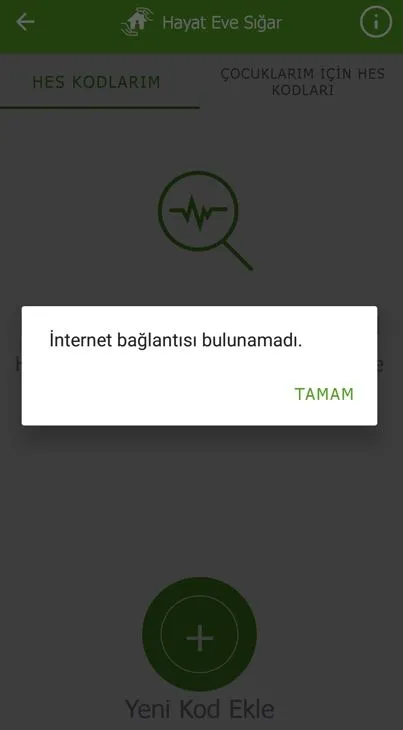Bazı kullanıcılar uygulamaya girdiğinde "internet bağlantısı bulunamadı" uyarısıyla karşılaşıyor. Bu aşamayı geçerek HES kodlarım kısmına gelindiğinde uygulamanın donduğu, ekranda yeniden aynı uyarının alındığı görülüyor. Yaşanan aksaklıkla ilgili detaylar haberimizde yer alacak.
