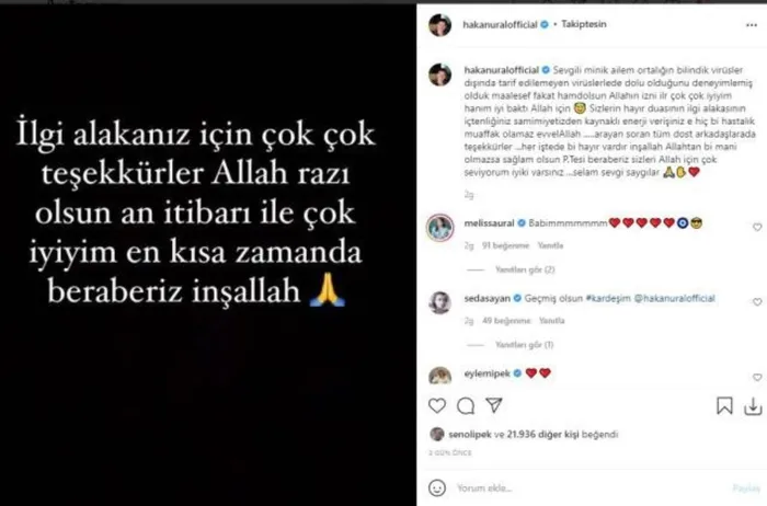 Hakan Ural'ın paylaşımının altına çok sayıda ''Geçmiş olsun'' ve '' Acil şifalar diliyorum'' yorumları yapıldı.