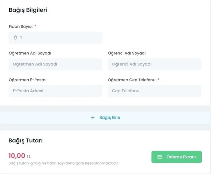 Başvuruları yapacak olanlar 10 TL fidan bağış ücretini ödeyecek. Bağış tutarı, girdiğiniz fidan sayılarına göre hesaplanacak.