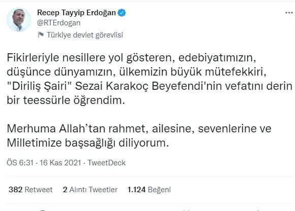 Başkan Erdoğan Sezai Karakoç'un 'Ey Sevgili' şiirini okumuştu! | Video