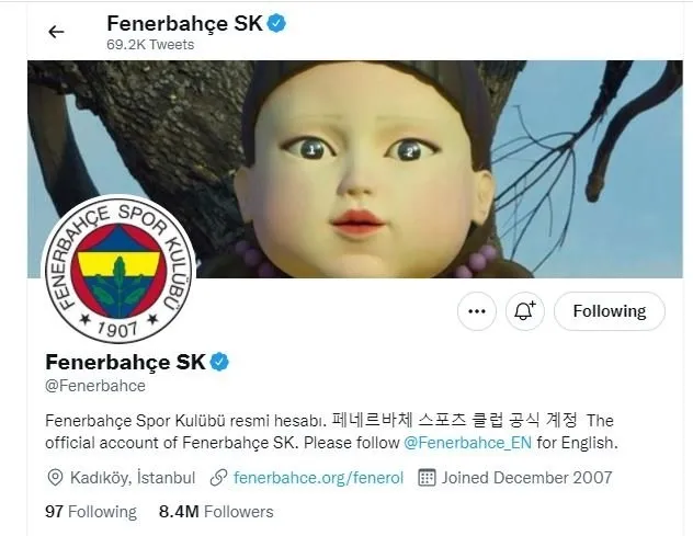 Maçın ardından Fenerbahçe'nin Twitter hesabının arka plan resmi de aynı şekilde Squid Game dizisinden bir kare koyarak yine bir gönderme yapıldı. Karakterin gözlerine 1-2 rakamları yazıldı.