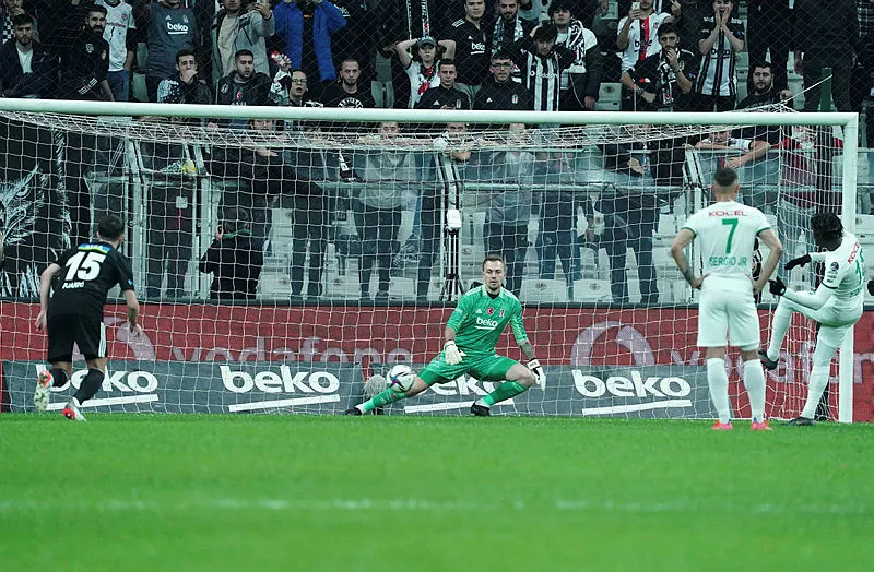 18. dakikada Zeki Yavru'nun sağdan ortasında Sergio'nun kafayla vurduğu top Rosier'in eline temas ederken hakem Hüseyin Göçek, VAR incelemesinin ardından penaltıya hükmetti.
