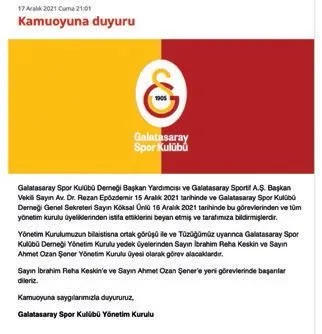 Rezan Epözdemir ile Genel Sekreter Köksal Ünlü'nün yerine yedek üyelerden Reha Keskin ve Ahmet Ozan Şener görev alacaklardır" ifadesini kullandı.