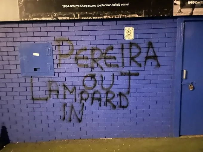 Kulübün gündemindeki isimlerden Frank Lampard'ın Everton'ın başına geçmesini isteyen bazı taraftarlar, stadın duvarına "Pereira dışarı, Lampard içeri" yazdı.