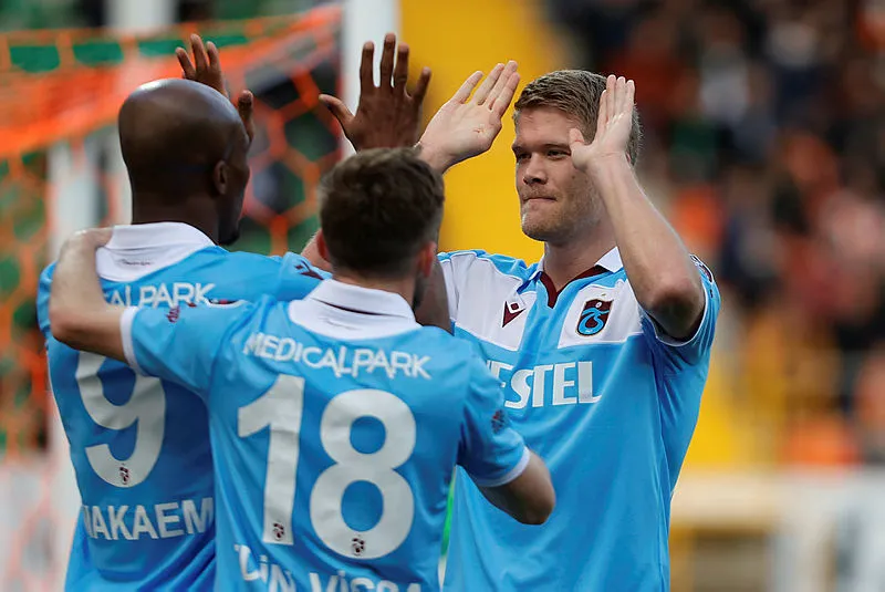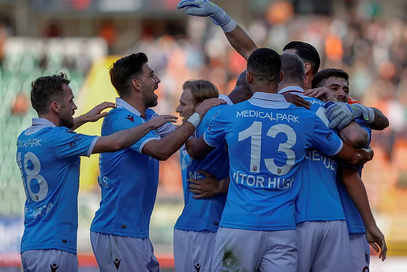 Son dakika haberi... Spor Toto Süper Lig 26. haftasında lider Trabzonspor, Alanyaspor'a konuk oldu. Karşılaşmayı konuk ekip Trabzonspor, tamamını ilk yarıda attığı gollerle 4-0 kazandı. Bordo-mavililere galibiyeti getiren golleri 5' ve 26'da Anthony Nwakaeme 36'da Andreas Cornelius ve 39'da Dorukhan Toköz kaydetti. Alanyaspor'da Wilson Eduardo 67'de bir penaltı vuruşundan yararlanamadı.