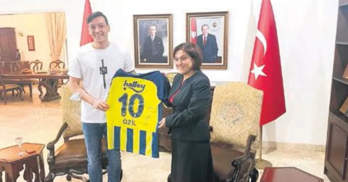 Endonezya'daki Türkiye Cumhuriyeti Cakarta Büyükelçiliği'ni ziyaret eden Mesut Özil, Büyükelçi Aşkın Asan'a F.Bahçe forması hediye etti.