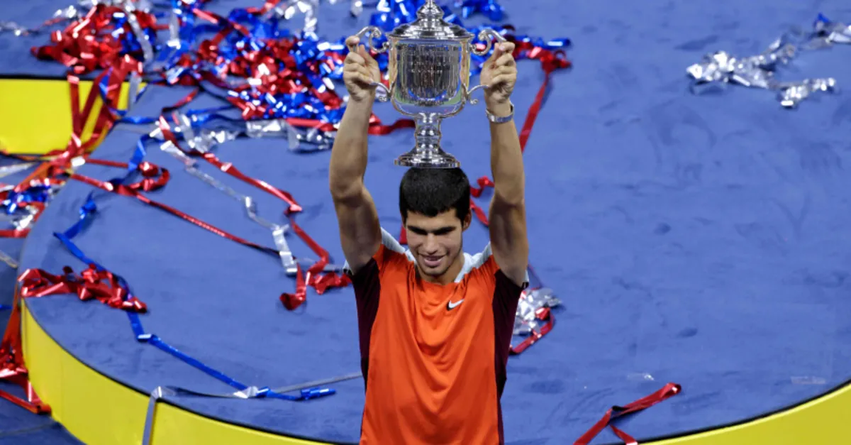 New York kentinde düzenlenen turnuvanın tek erkekler finalinde Norveçli Casper Ruud'u 3-1 yenerek kupaya uzanan Alcaraz, henüz 19 yaşında tarihe geçmeyi başardı. Bu sezonun flaş isimlerinden ve geleceğin en parlak tenisçileri arasında gösterilen Alcaraz, elde ettiği grand slam zaferiyle üç alanda rekorlara imza attı.