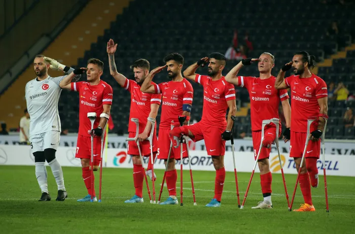 Ay yıldızlı ampute futbolcular, attıkları golden sonra asker selamı verdi.